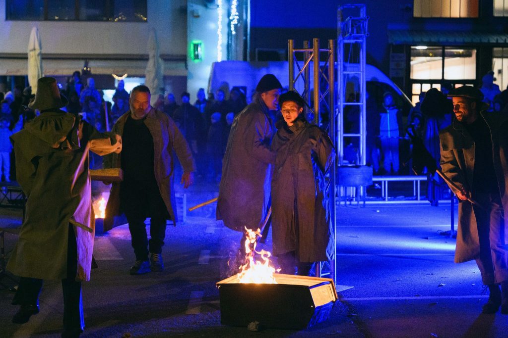 Rokovnjači, roman Jurčiča in Stritarja, oživi v ulično-gledališkem mashupu KD Priden možic, Čupakabre in Noreie. Silovit ognjeni kolaž z glasbo in koreografijo razkriva zgodbo dezerterjev, ki se uprejo vojni in plačajo ceno večnega pregnanstva.