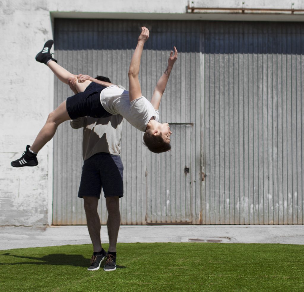 Utrinek norosti na vogalu ulice. Krog umetne trave, kjer akrobat in plesalka zavzameta prostor tako, da mimoidočega povabita, naj se ustavi in globoko vdihne svež zrak. Majhen, prijeten kotiček, ki prikliče spokojnost narave, v katerem lahko brezskrbno izgubimo sled preostali čredi. Ta travnik, poln podob, nato postane tako bojišče kot tudi igrišče. Prostor-čas med psom in volkom, med otroštvom in odraslostjo, med ustvarjalnimi in uničevalnimi impulzi, med plesom in cirkusom. Zgodba, ki jo lahko “popijemo” stoje, medtem ko ležimo na travi.